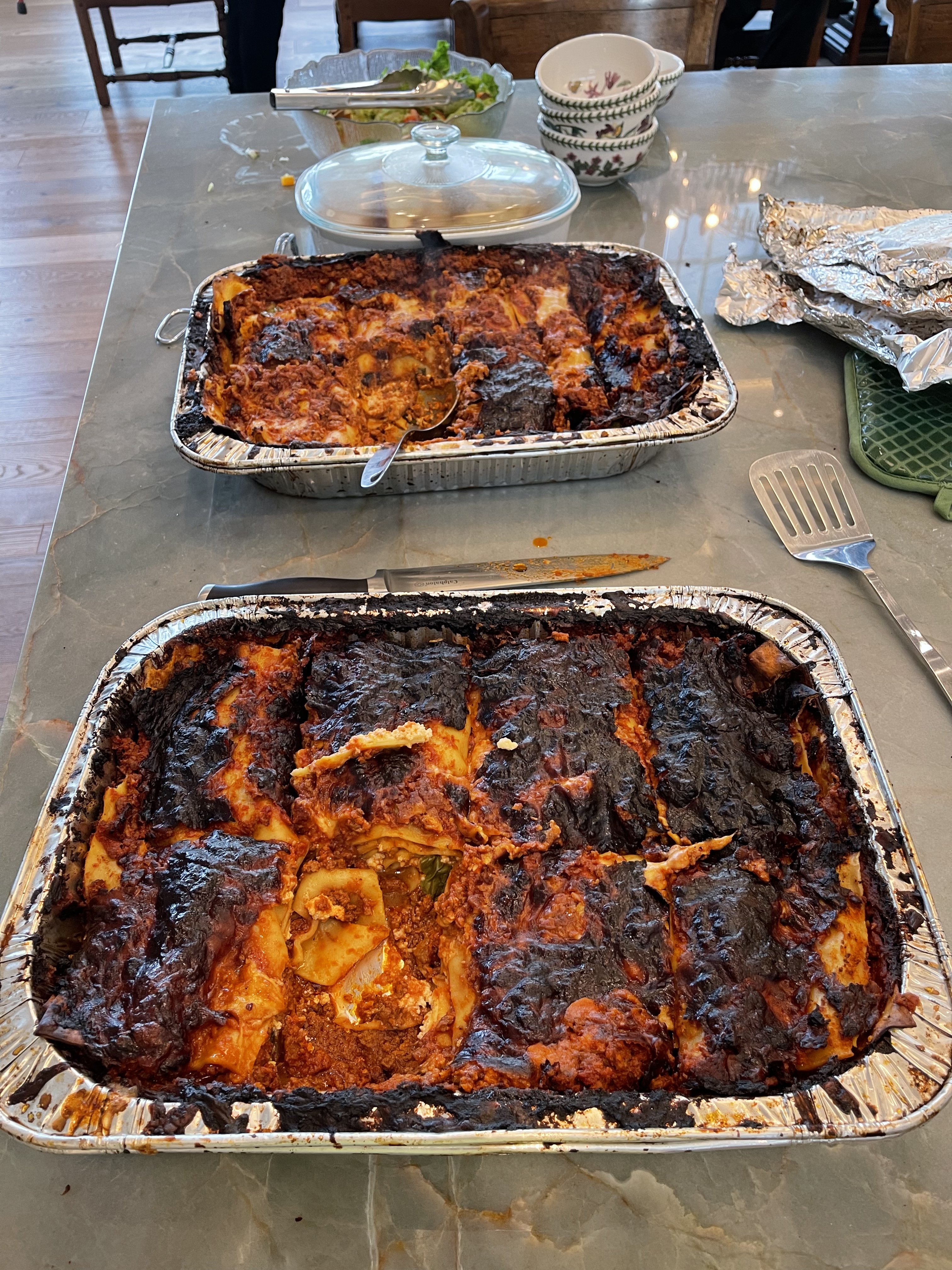 Lasagna. Black and crispy cheese on the top actually was good.