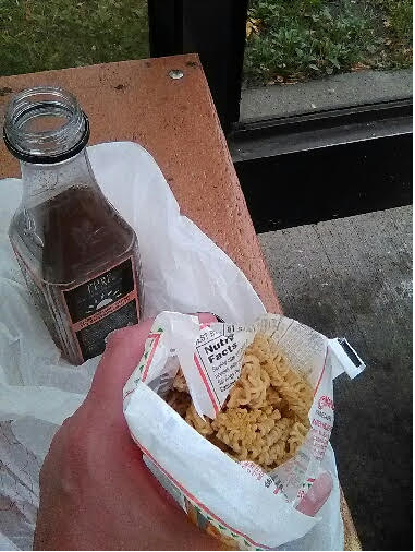 Matty was broke and eating off a Tim Horton's gift card-crispy chicken, chocolate chip muffins and double doubles.