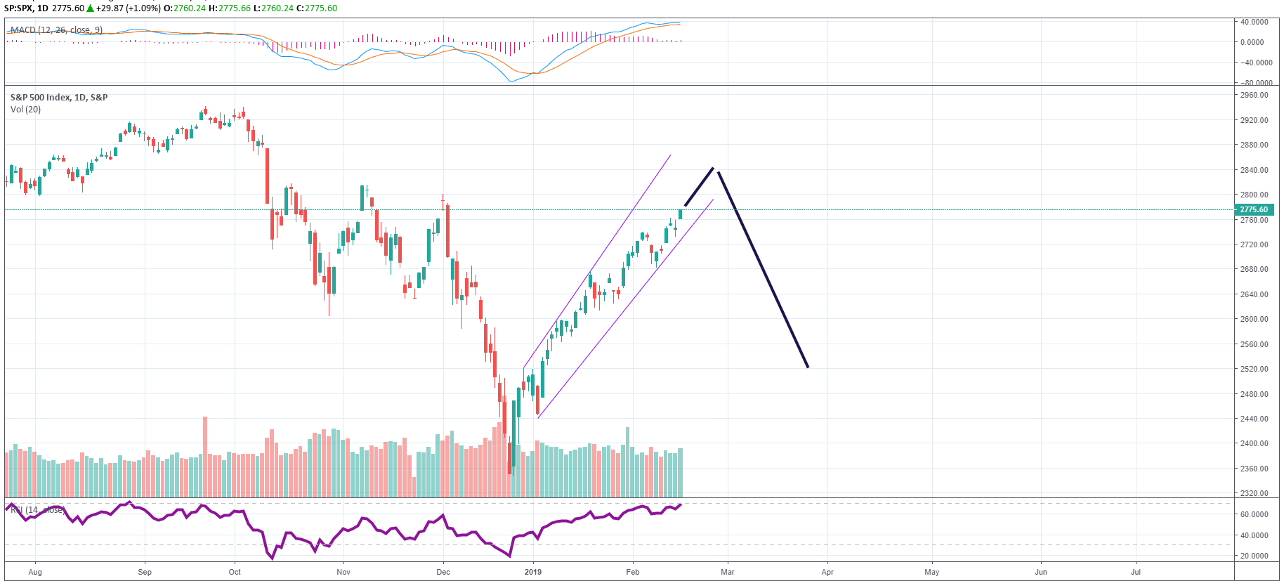 Now, im normally not a fan of indicators such as MACD and RSI but the signals for the S&P have been historically pretty straight forward and now im seeing the same alerts occur that we saw in previous corrections. Specifically bearish divergence on the MACD and RSI, as well as poor volume coming in.