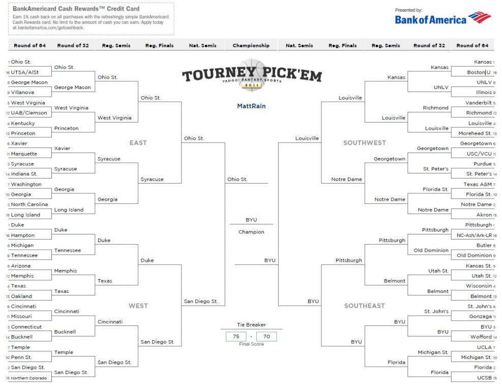 It feels like a Samsncharge bracket, but is this the best chance at winning it all? Seems stupid to start guessing upsets, because if you pick the wrong ones you're done.
