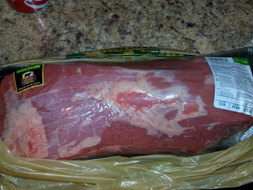 Wish there was a little more fat on it...hopefully some on the bottom for some fat beef insertion..eye of the round is leaner then say a top round...which is good for making Chicago style italian beef....that sucker there will be baked in the oven for sunday dinner...medium rare..and I am pumped about it already.
