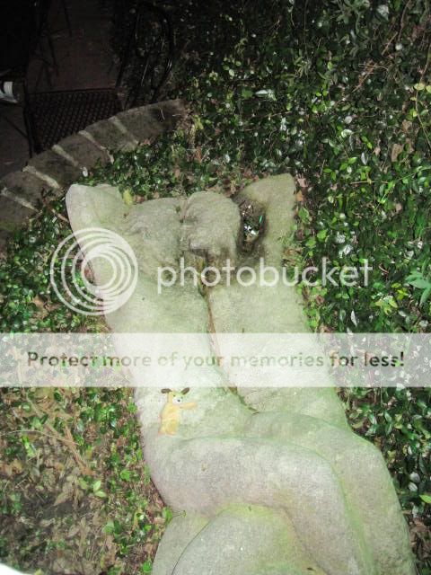 This is an unexplained statue in the garden patio at Lafitte's bar